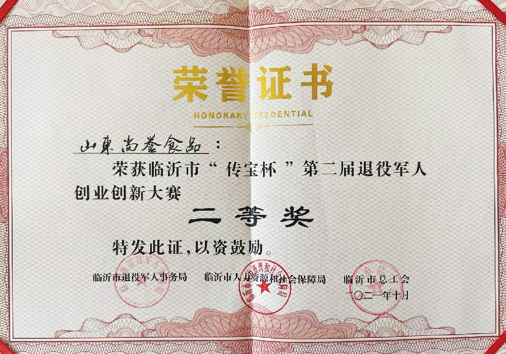 临沂市“传宝杯”第二届退役军人创业创新大赛二等奖