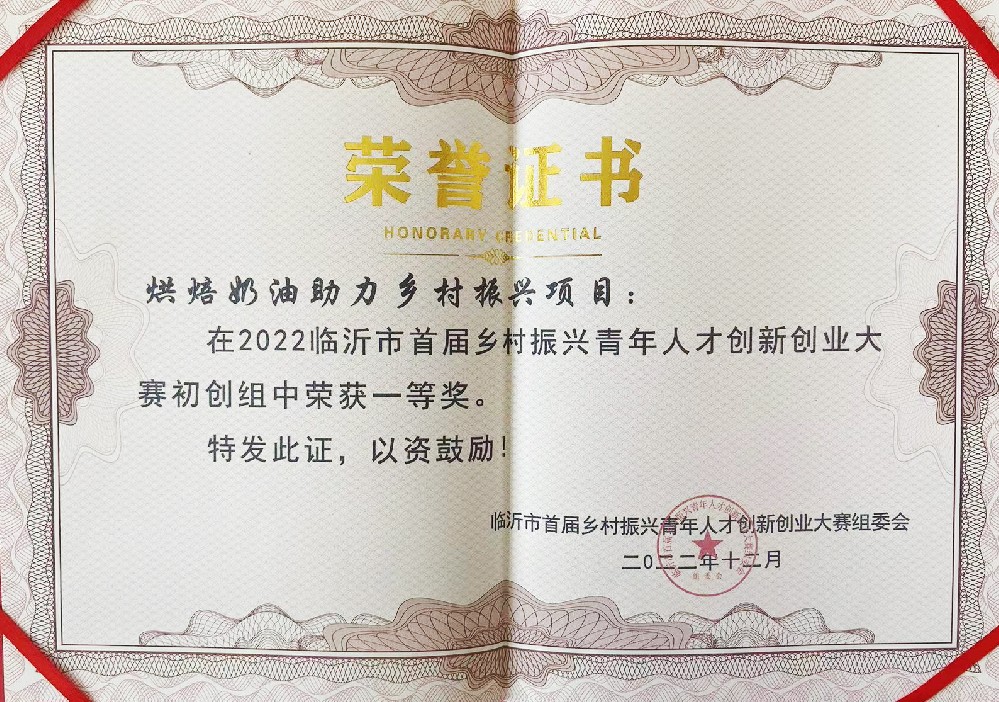 临沂市首届乡村振兴青年人才创新创业大赛初创组一等奖